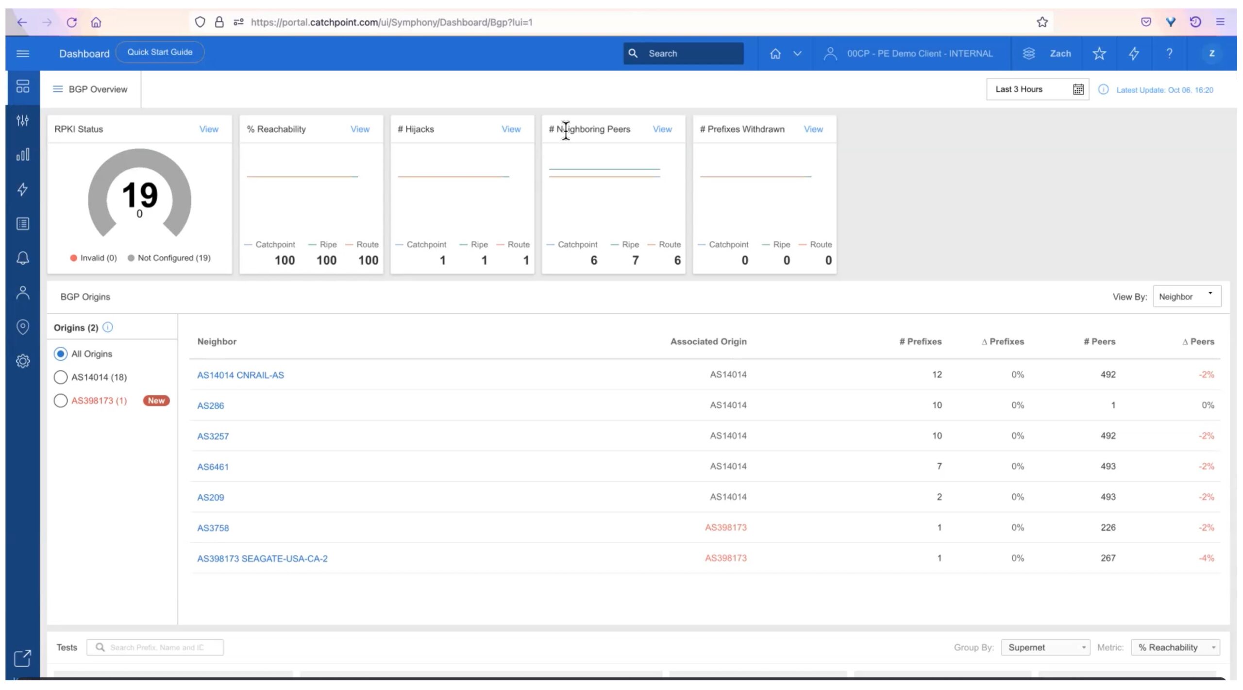 We’ll now take a quick tour of how Catchpoint displays the BGP data it has, via the BGP Dashboard. And how you can use it.