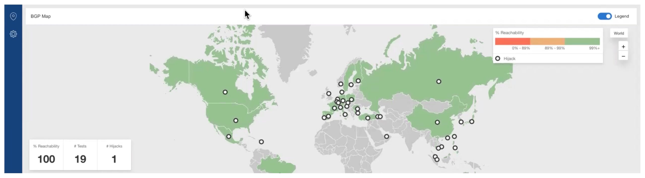 Below that is a world map view, which helps see the scope of any reachability problems (cities, countries, continents). That’s self-explanatory.