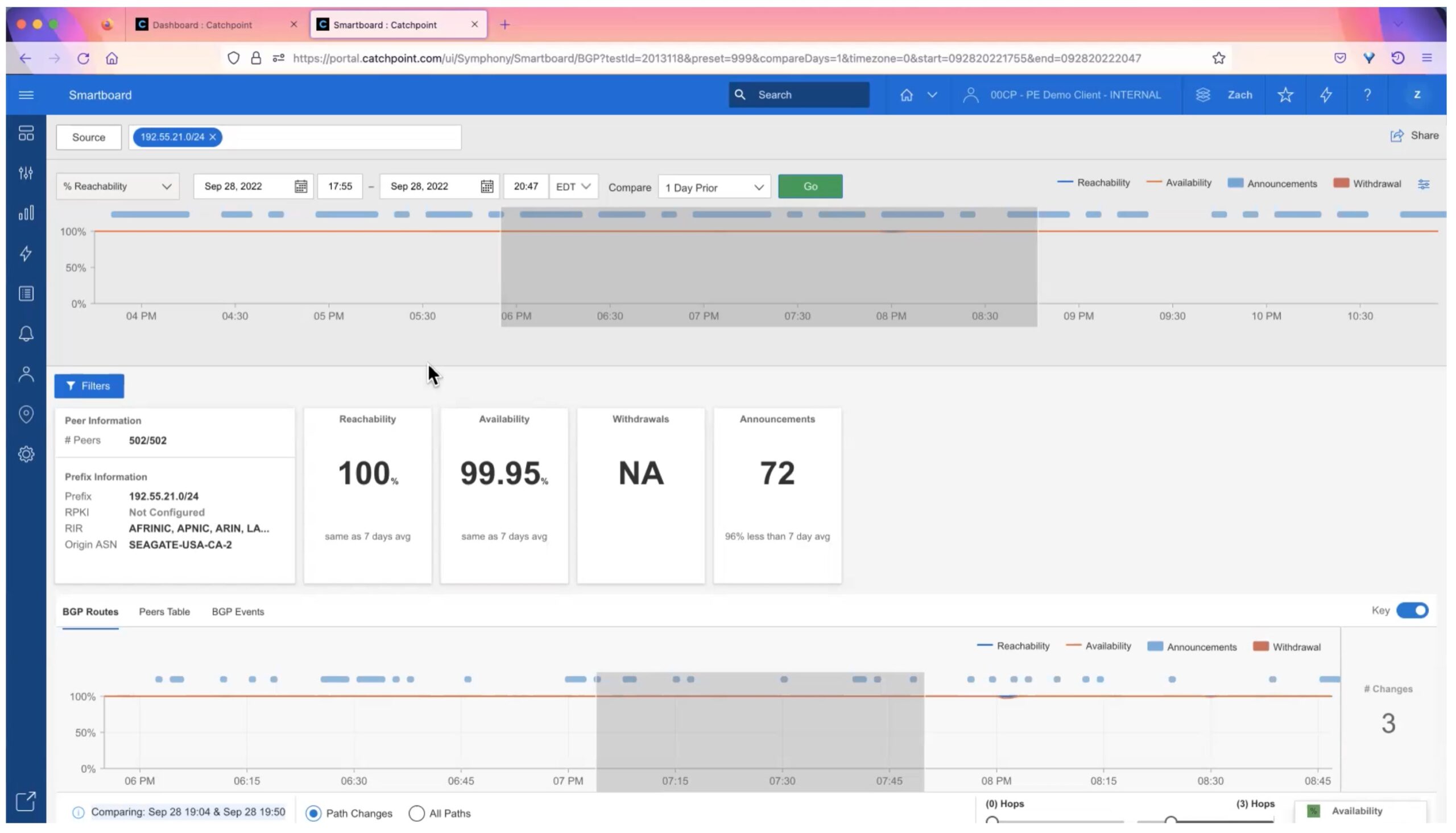 BGP Dashboard: What a Catchpoint User Sees