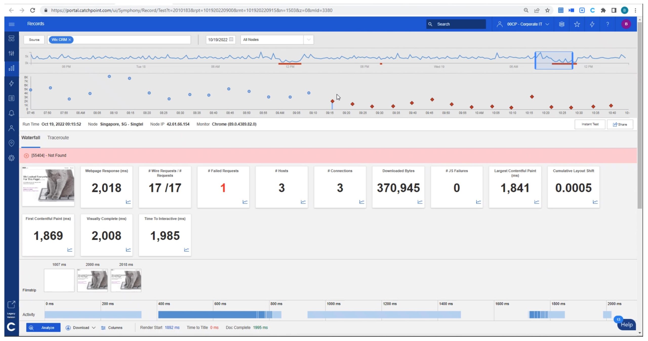 Catchpoint walked me through a real-world example. They have a SaaS CRM app that we won’t name used by some of their staff. (Note: all of their staff is WFH, Work From Home or wherever.)