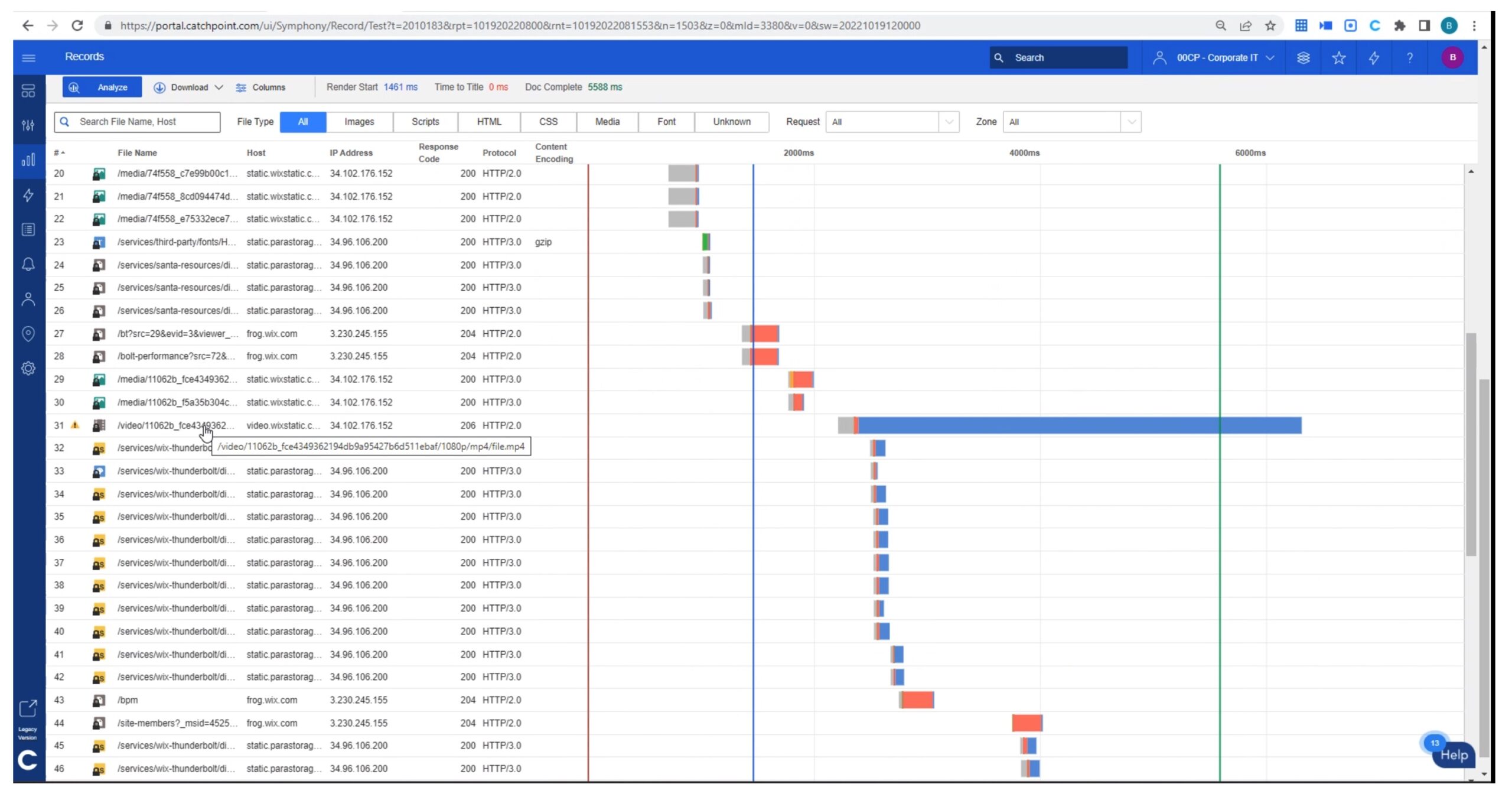 One valuable use of Catchpoint is working with the application owners to determine the slowest components to load, with the objective of speeding up page loads.