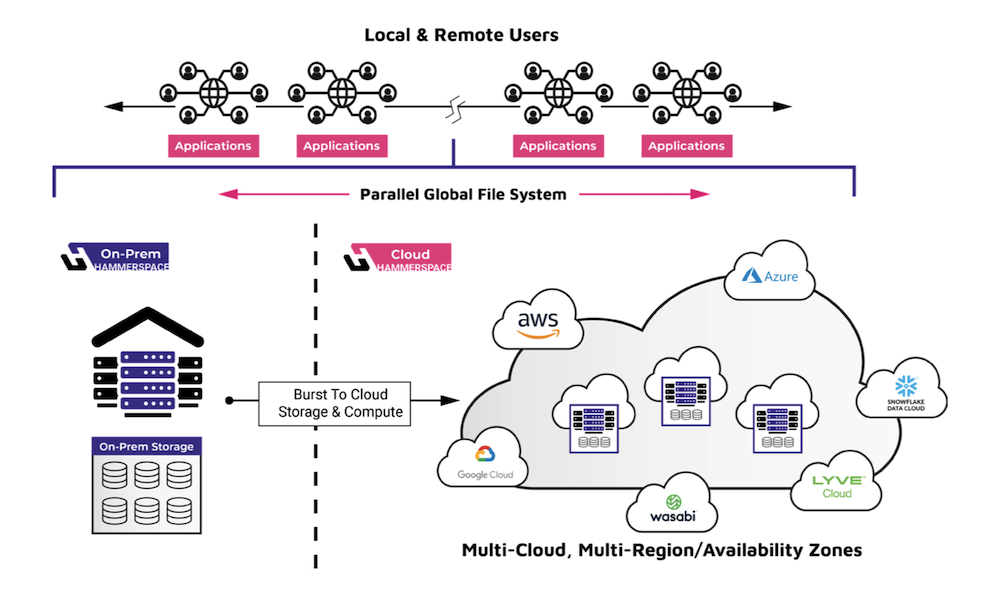 Hammerspace introduced the Global Data Environment as a method for a disparate set of users to have common file access of datasets from a panoply of otherwise incompatible storage sources and locations. The storage can be local, data-center NAS or object, or just cloud-based. Hammerspace provides a metadata layer that presents all of this storage in a single global namespace, consumable as NFS, SMB/CIFS or Container Storage Interface (CSI) for Kubernetes.