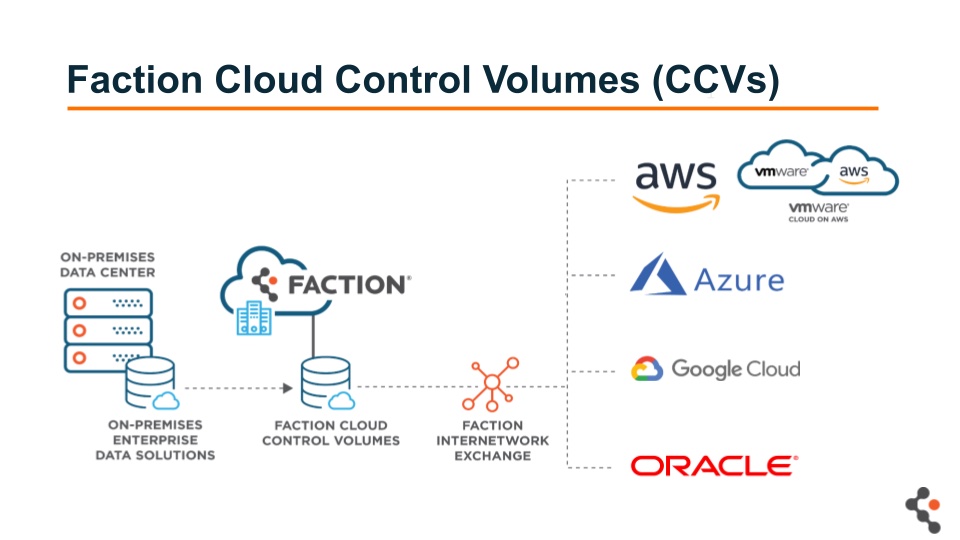Cloud Control Volumes is set up on a high- performing proprietary network called Faction Internetwork eXchange or FIX via which it connects to public clouds like AWS, Azure and Oracle Cloud.
