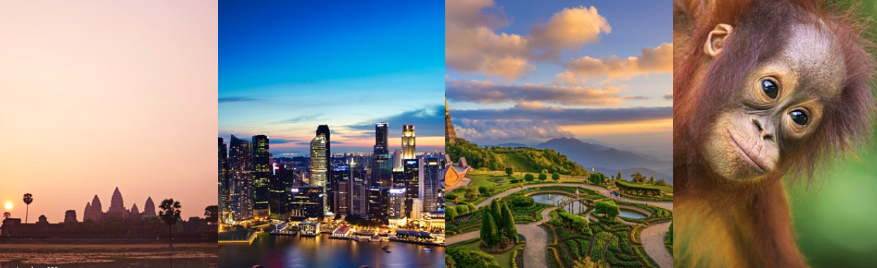 Images (L-R) of Angkor Wat, Singapore, Chiang Mai, and Sabah, courtesy of the Top Experiences of Southeast Asisa page of Lonely Planet
