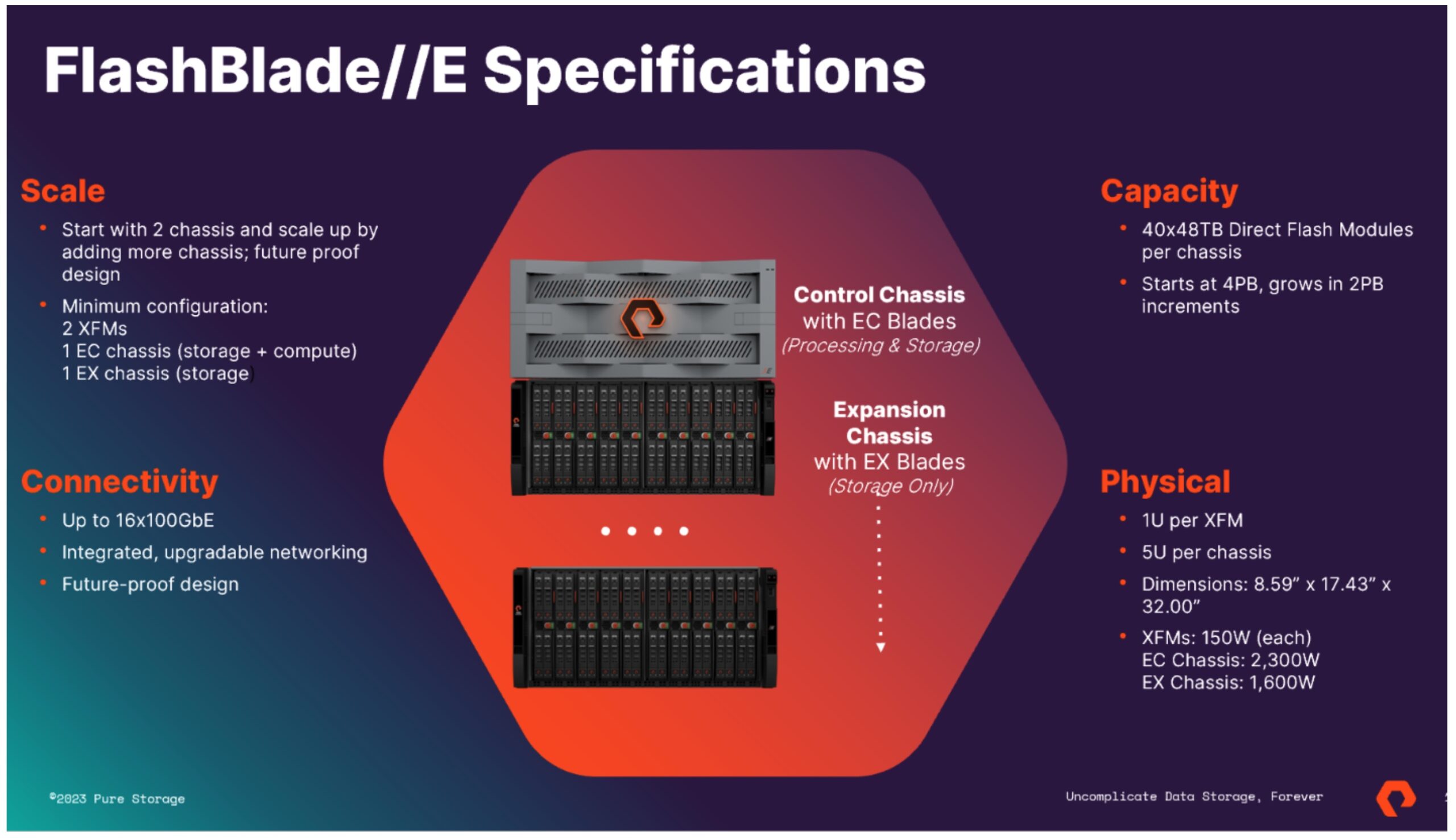 Last week, I met with the Pure Storage’s FlashBlade product team to hear about their newest offering for unstructured data storage. Given Pure’s focus on high-performance, scale-out all-flash solutions, I assumed that I’d be hearing about a new edition of FlashBlade//S. But instead, we talked about their new software-plus-hardware product aimed at workloads with similar access performance needs: FlashBlade//E.