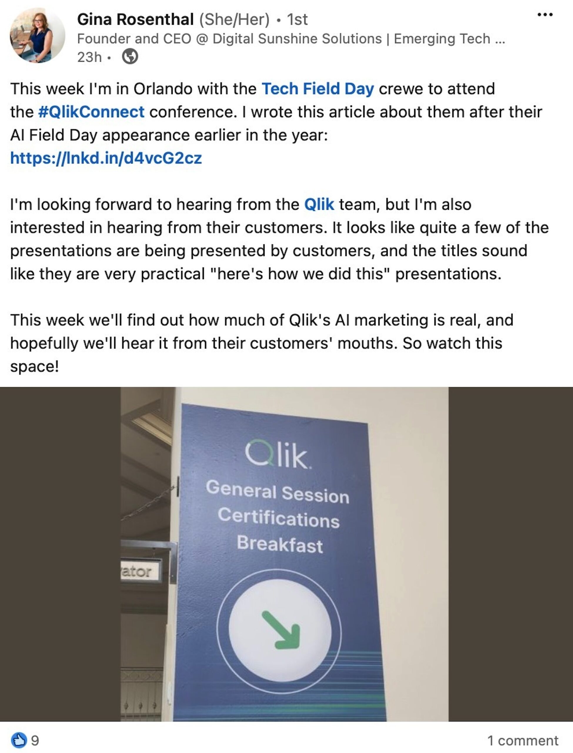 Qlik's AI messaging and products are more data focused than a lot of other messaging I've seen, and it's refreshing. #QlikConnect#TFDX