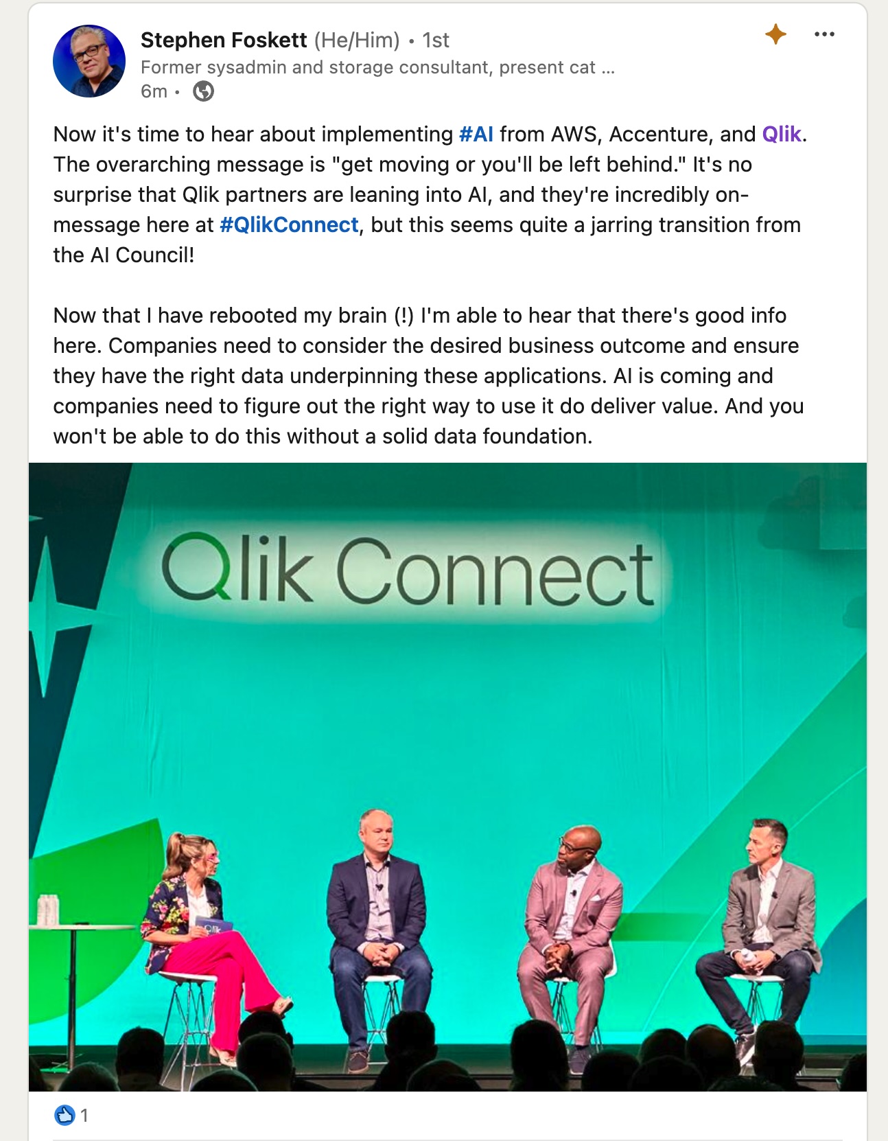 Join Tech Field Day and Qlik at Qlik Connect for the Day Two Keynote with invaluable insights, best practices, and insider tips to elevate your data and analytics expertise! Discover Qlik’s vision, product roadmap, and future outlook. Hear from Qlik executives, partners, customers, and industry insiders as they share best practices and innovative applications for data, analytics, and AI, and learn from the former director of the James Webb Space Telescope.