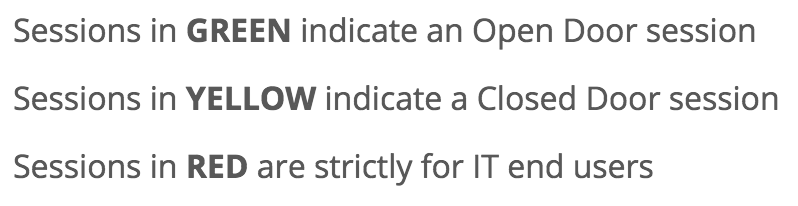 This sounds at first like some people (like me!) won’t get much out of the event. However it’s not quite as restrictive as it sounds. The promise is to create some press-free “secure” environments during the ONUG conference, rather than the entire conference being limited to end users. Thus, the sessions get labeled by a simple key: