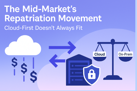 In recent years, we’ve started to hear a different kind of story. Companies are pulling workloads back from the public cloud to on-premises data centers or colocation facilities. It’s called repatriation, and while it’s not about abandoning the cloud, it is about admitting that the one-size-fits-all narrative doesn’t hold up when you’re a $200M manufacturer, a regional healthcare provider or a 1,500-person SaaS firm.