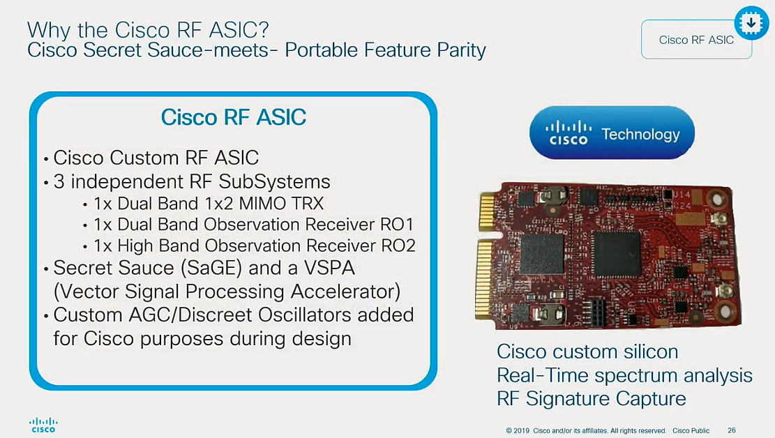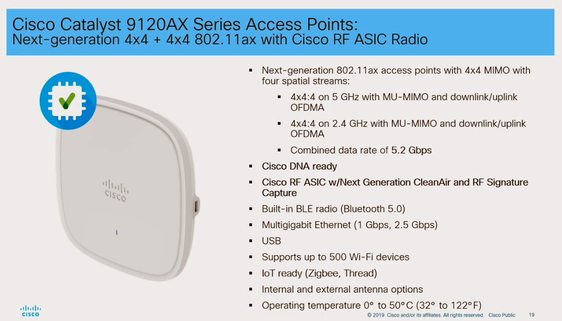 There’s also the Cisco RF ASIC, which is a software-defined radio. This makes the 9120 a very versatile access point.