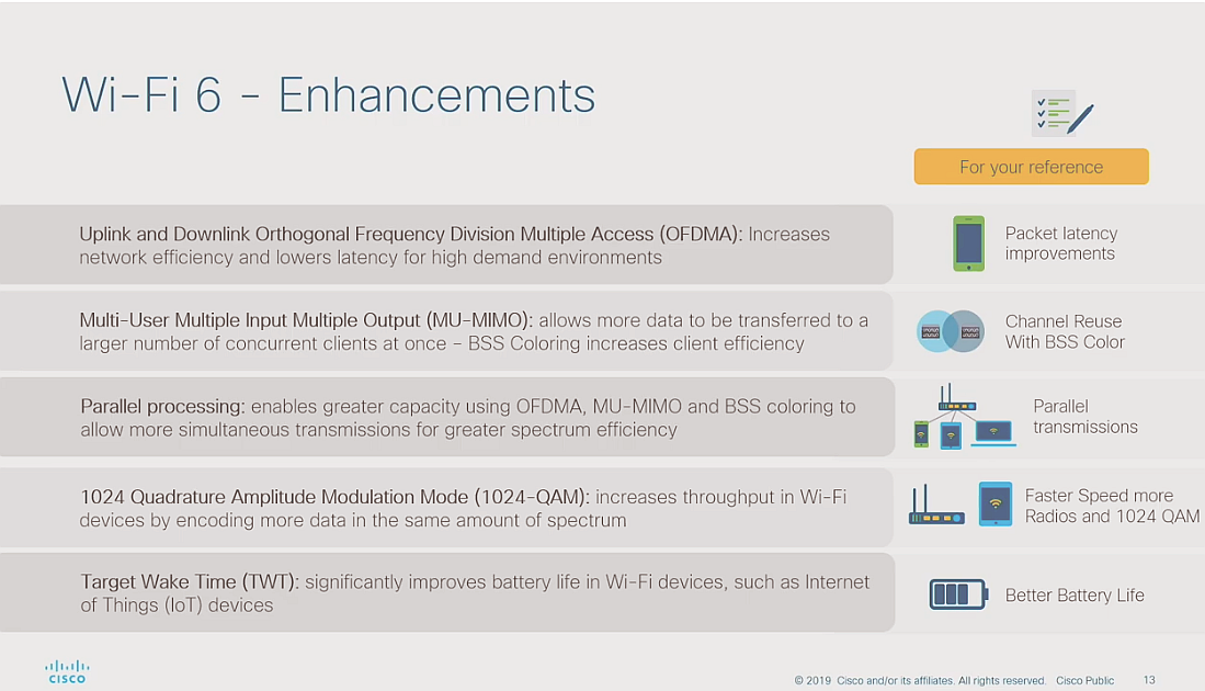 Let’s have a quick look at the below diagram listing key improvements for Wi-Fi 6: