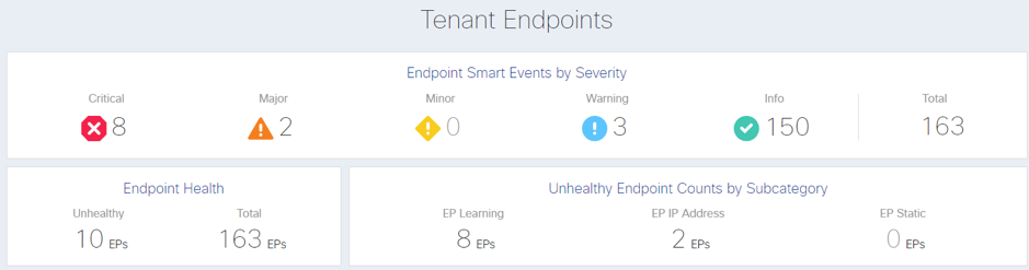 One of the most powerful features of NAE is the ability to track Endpoints attached to the fabric and continuously inspect their behavior, triggering a Smart Event in case any potential problems arises.