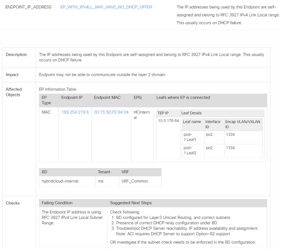An Endpoint may also fail to get an IP address from the DHCP server. There’s a Smart Event for that! This check is performed continuously for every Endpoint connected to the fabric, no one is left behind with this exhaustive analysis.