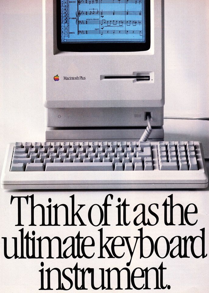 In the fall of 1986 I went off to study jazz guitar at Temple University in Philadelphia. It wasn’t long after I arrived that I discovered the music department had its own computer lab. It was filled with Apple IIe computers and this new little computer called the Macintosh Plus. The Macintosh plus was also connected via MIDI to synthesizers and a 4-track recorder. I think I spent all my spare time in the computer lab just learning how to use the Mac and recording my own music. By the end of my freshman year I was offered a position to be the undergrad computer lab assistant, a dream come true!