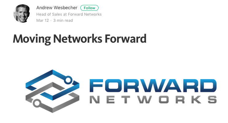 In getting ready for Networking Field Day, I wanted to make sure I had a feel for all the companies. Most of this was pretty easy, even for the newer players, there was some published content about what they were offering. At the very least, there was a general sense of what we would see, even if there were a dearth of technical detail. For Forward Networks, admittedly still in stealth prior to the event, there was a vacuum. The best I could find was this Medium post by Andrew Wesbecher, their Head of Sales. From this I learned Forward wanted “to help enterprises avert costly network failures stemming from misconfiguration and other human error.” Okay…