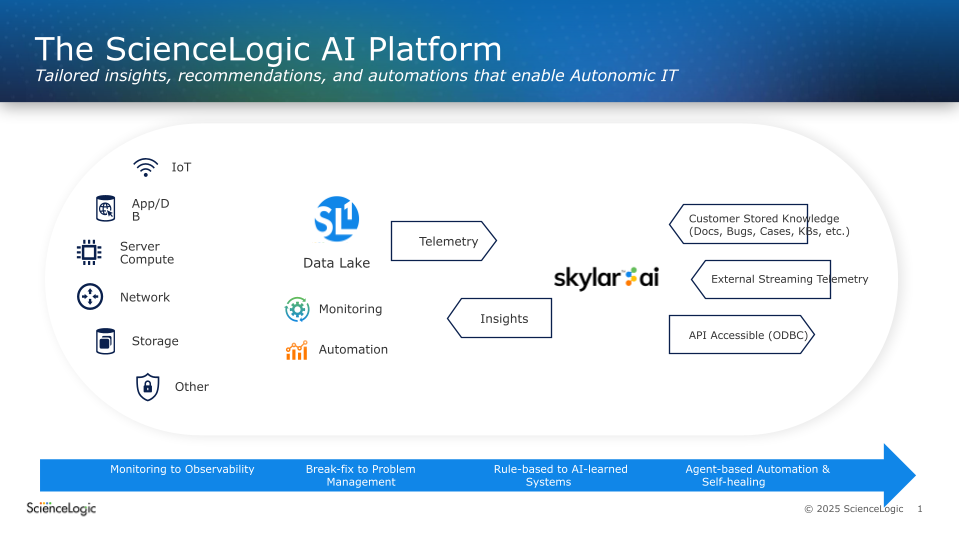 At the core of the ScienceLogic platform is Skylar Analytics, an AIOps engine that combines machine learning algorithms with advanced analytics to surface trends and predict likely events. That capability is now being made further accessible via usage of multiple large language models (LLMs) to both provide a natural language interface and access to various knowledge bases to the data lake that drives the core AIOps platform, said Nappi.