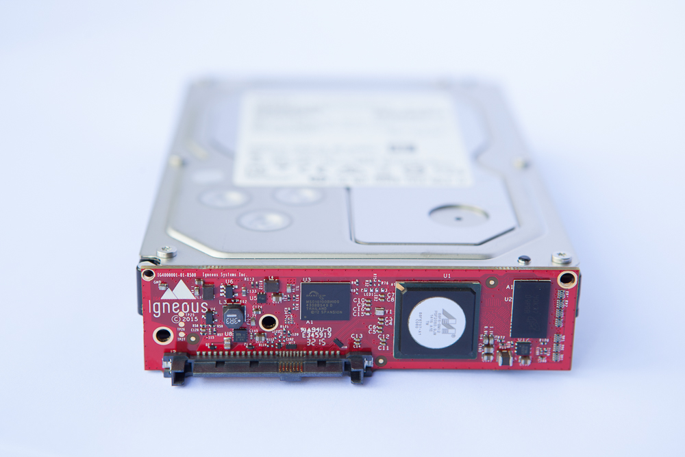 Hardware has always been my gateway into understanding technology. I’ll probably never be able to code (unless you count “Hello World” in Python), so maybe it’s simply that I understand hardware a little better. Whatever the reason, Igneous led their product deep dive with how the developed their hardware, so it roped me right in. They wanted to remove I/O bottlenecks that compute puts on storage, as well as lessen the inherently high fault domain in a typical array. After a couple prototypes, they came upon a novel solution: put compute on all the drives! They call this a RatioPerfect Architecture, and while my perfect ratio might include a space between my buzzwords, I really like the approach. Instead of two SAS cards feeding into an extremely powerful Xeon processor, each drive in the Igneous array is equipped with a 32-bit ARM board with full gigabit Ethernet access. This inverses the fault domain setup of a traditional array, any drive or CPU failure will only effect a single drive. Igneous designed their own custom data path to account for this, so that the impact on performance and data retention upon failure should be minimal.