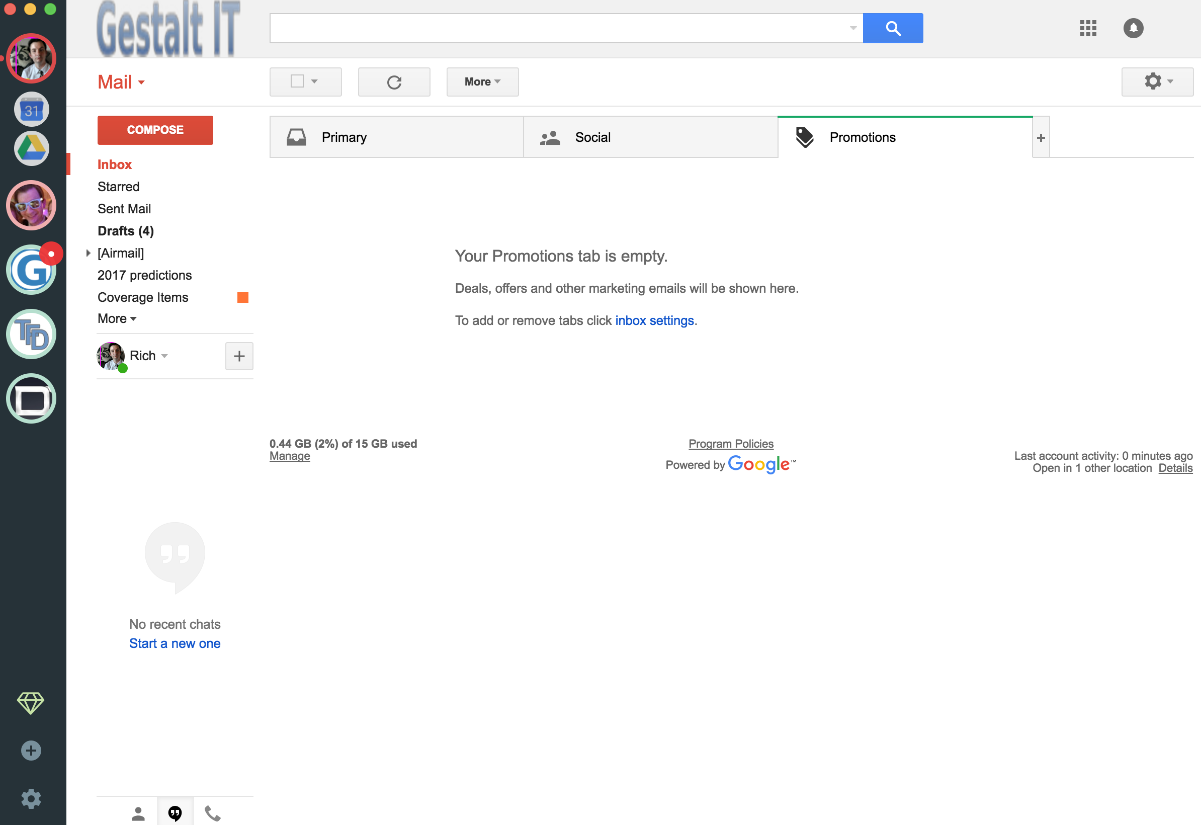 Overall, I like how Wavebox by default lays out the apps. When you sync a Google account, it asks you what other G Suite services you’d like to sync as well, like Calendar, Drive, and Photos. The problem is these are always tied to the icon with that account, and you can’t customerize the icon for those services. Personally, I’d like to keep all my email accounts together, with other service to organize as I’d like. It’s minor, but a little annoying that the main Google account has to “own” those services.