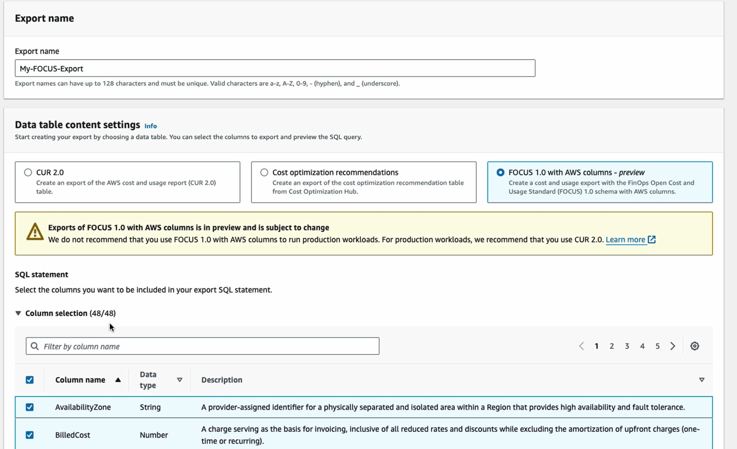 Amazon Web Services (AWS) is previewing support for a FOCUS v1.0 specification developed by the FinOps Foundation within its billing and cost management tools as part of an effort to make it simpler for IT teams to track cloud computing costs.