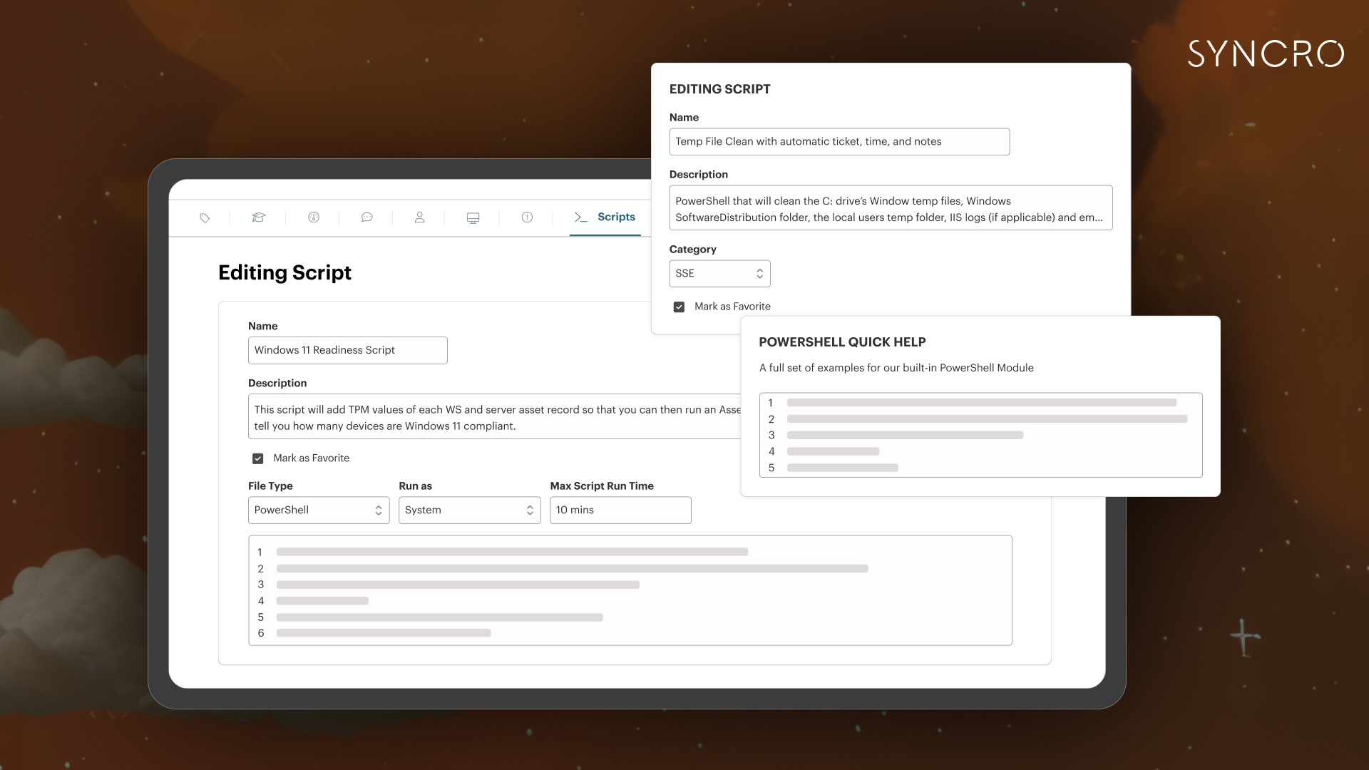 The Syncro ITSM platform is designed specifically for small to medium businesses (SMBs) that run Windows applications. At its core is a scripting engine packaged with a library of curated scripts that makes it simpler to automate a range of IT workflows. It also makes use of artificial intelligence (AI) to classify workflows in a way that helps improve response times.