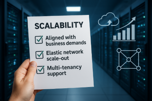 Hand-in-hand with reliability is scalability – the ability of the network to grow and adapt seamlessly as business demands evolve. In the era of cloud computing, AI, and digital business, data center networks must accommodate constant growth in traffic and rapid shifts in workloads. The checklist infographic stresses scalability as being “aligned with business demands,” enabling elastic network scale-out and multi-tenancy support for growing environments. This reflects a strategic priority: data center networks should never become the bottleneck to expansion or innovation.